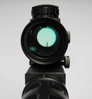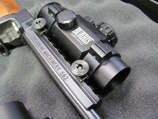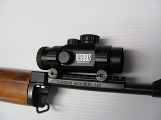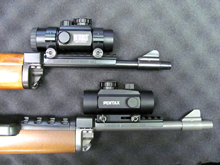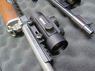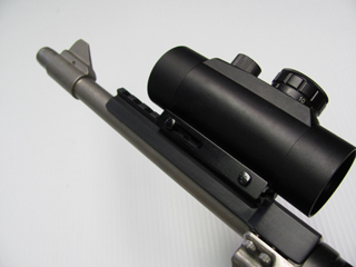 Red dot sight mounted on the rail. |